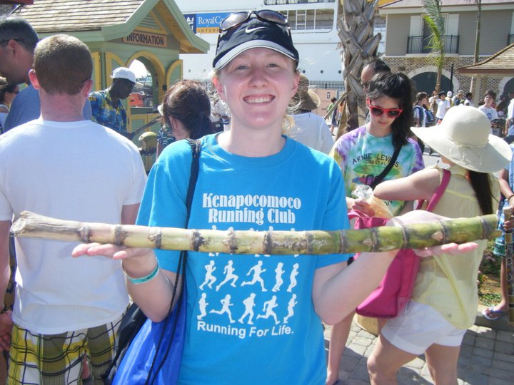 | Hometown: Peru, Indiana | This is a picture of me holding a piece of sugar cane I bought in Jamaica this spring. One of my kindergarten students thought sugar cane grew in his backyard and I wanted to show him exactly what it looked like in real life. |